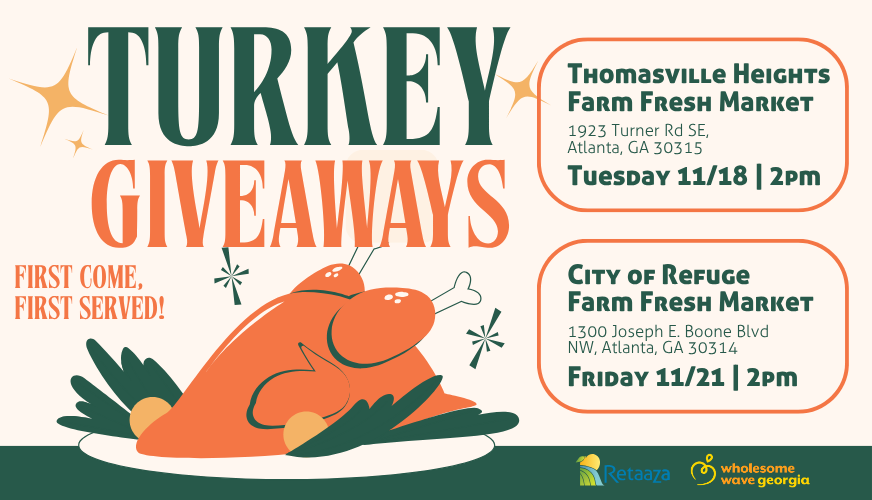 This past week, hundreds of neighbors across Atlanta picked up free turkeys ahead of the Thanksgiving holiday at multiple MARTA Market Stations and at our City of Refuge and Thomasville Heights Farm Fresh Markets!